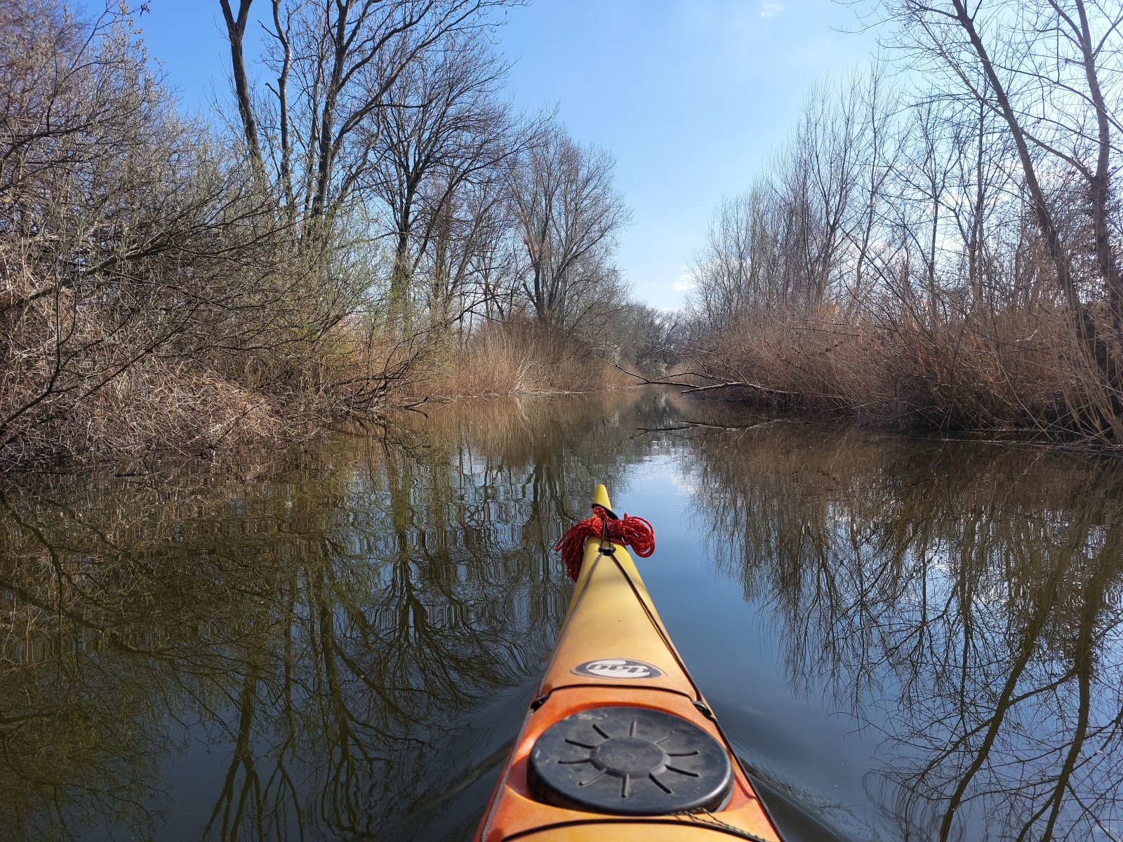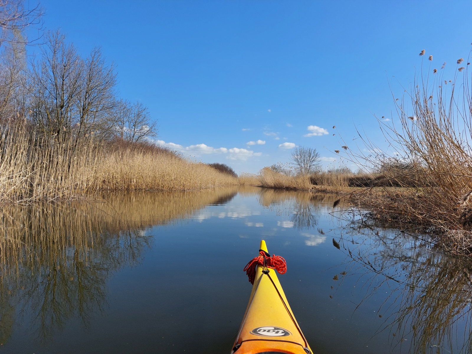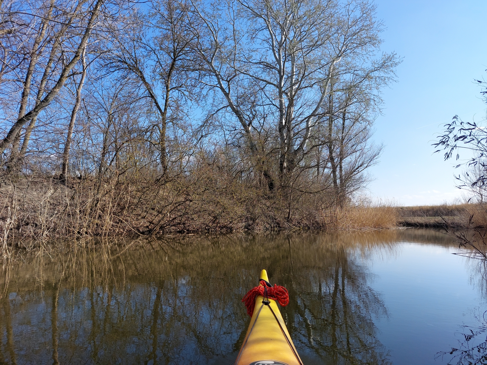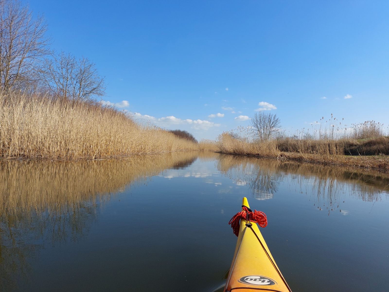 Bármennyire is vonzott bennünket a Duna, az új kenut nyugodtabb vízen szerettük volna kipróbálni. A Vajas-csatorna ilyenkor tavasszal még viszonylag jól járható, úgy egyeztünk meg, hogy ez a víz pont megfelelő lesz az év első túrájához és a kenu tesztjéhez.