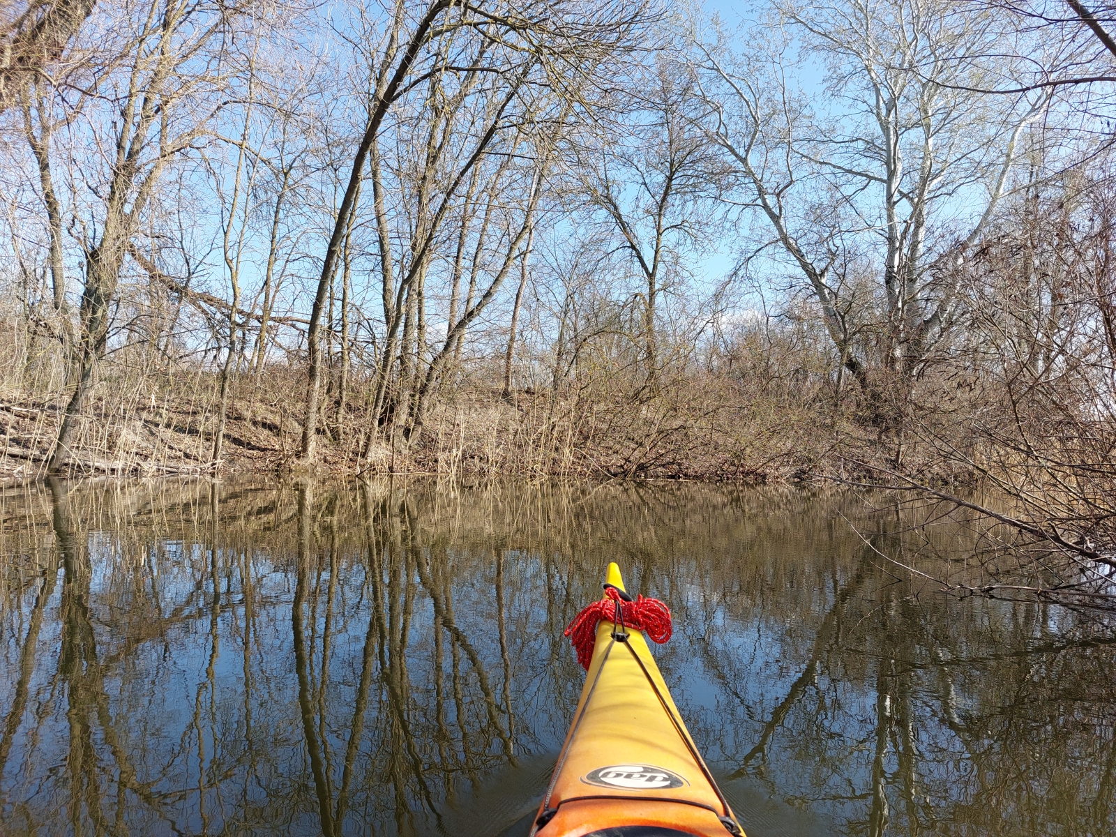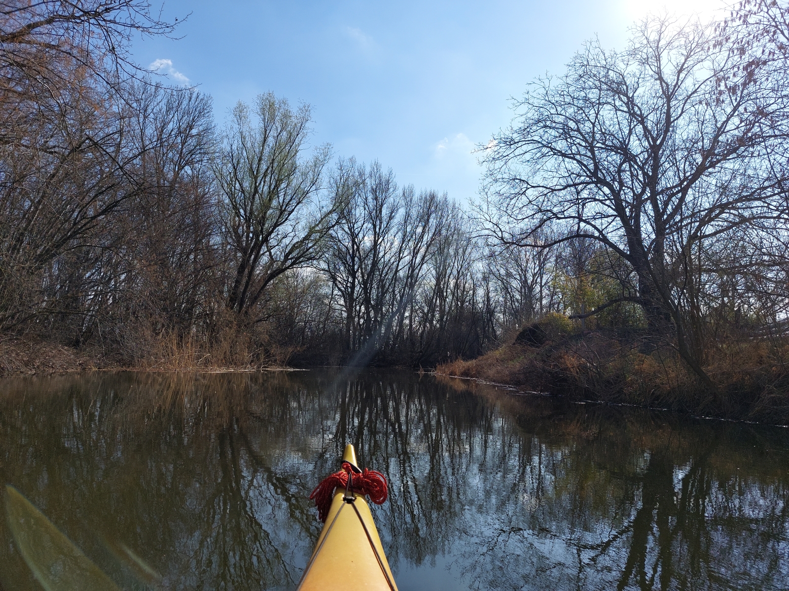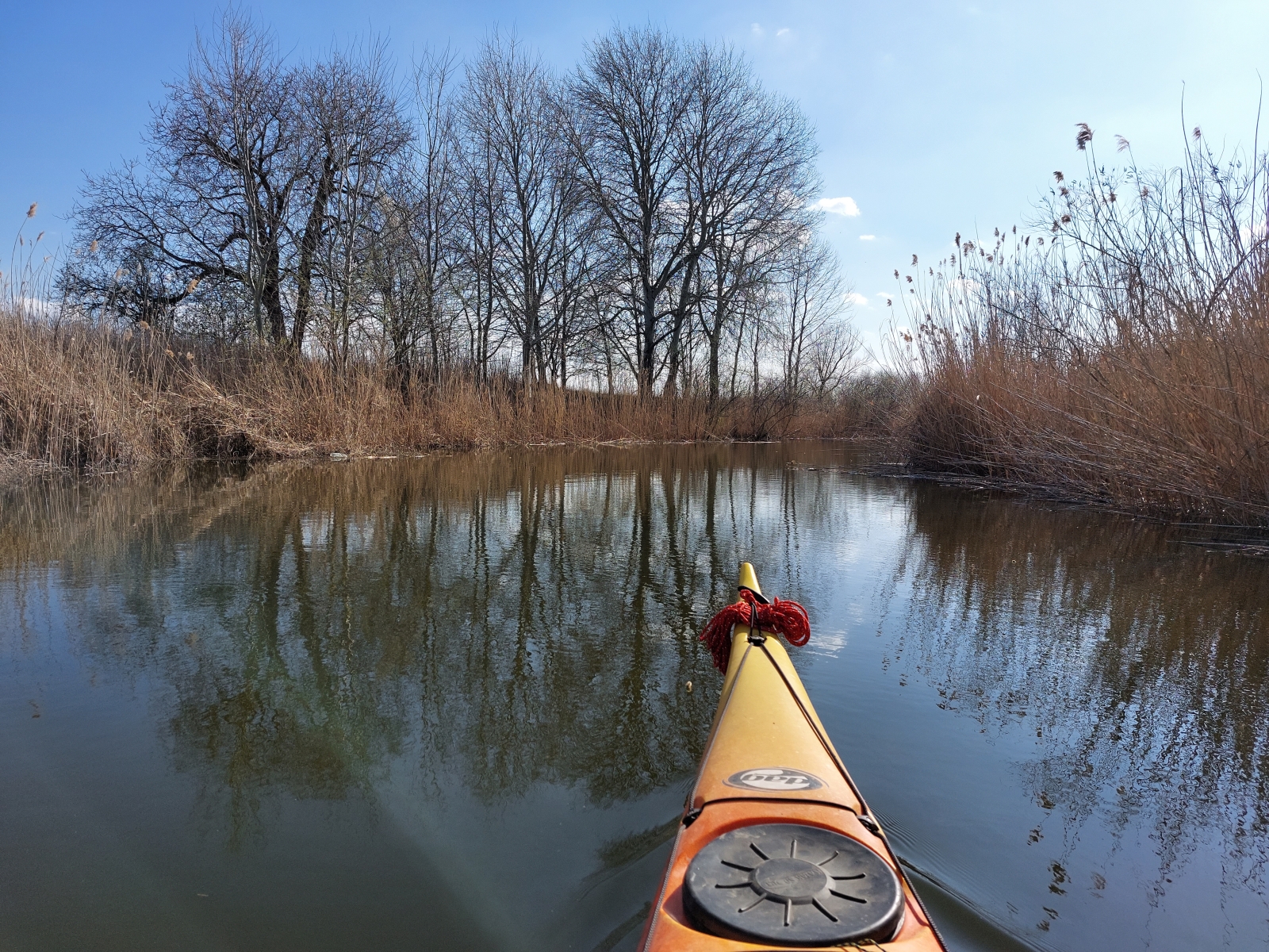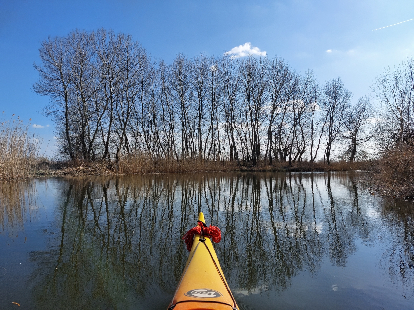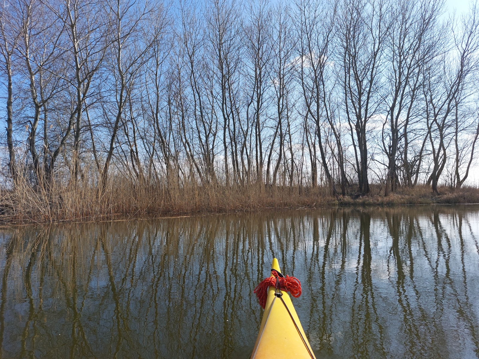 Bármennyire is vonzott bennünket a Duna, az új kenut nyugodtabb vízen szerettük volna kipróbálni. A Vajas-csatorna ilyenkor tavasszal még viszonylag jól járható, úgy egyeztünk meg, hogy ez a víz pont megfelelő lesz az év első túrájához és a kenu tesztjéhez.
